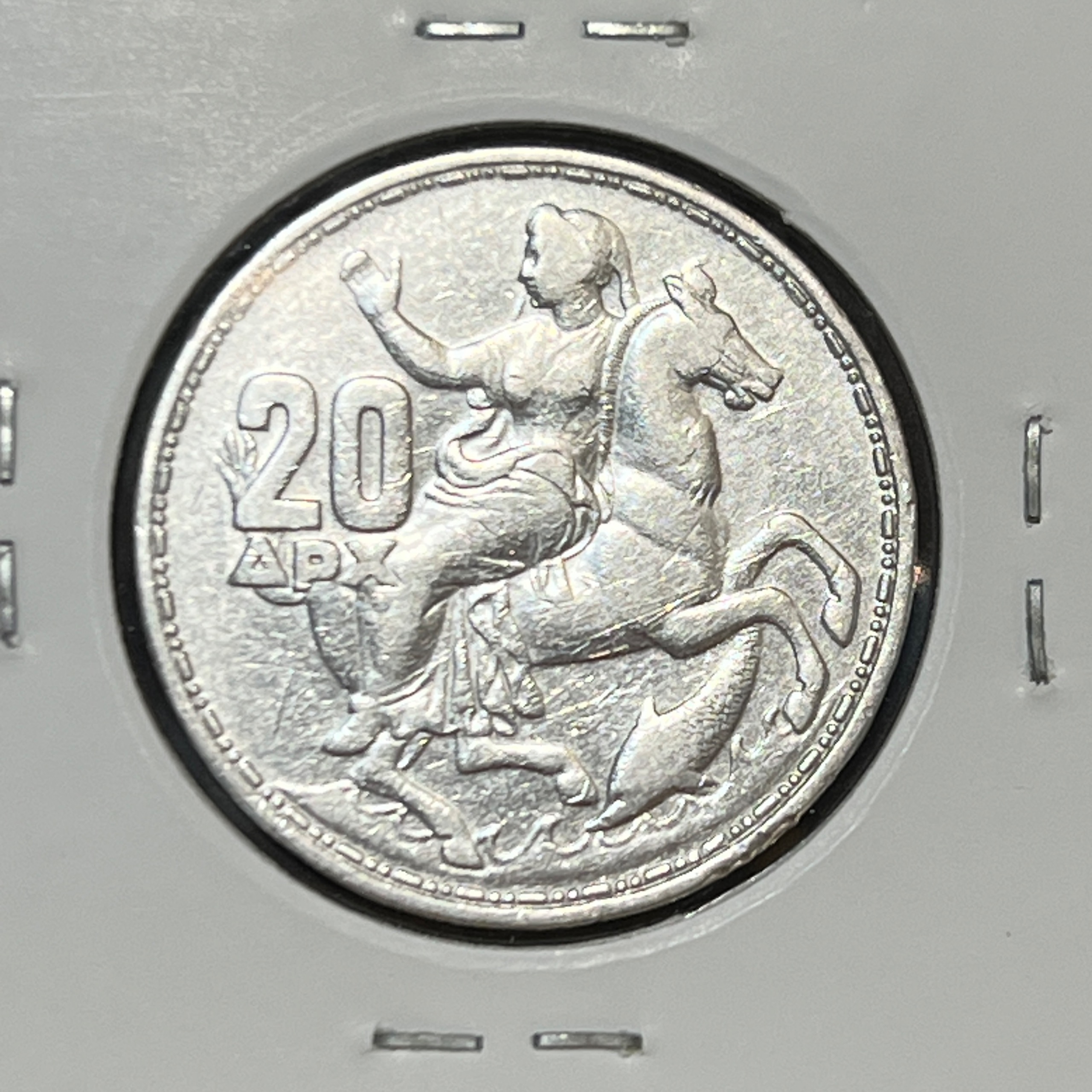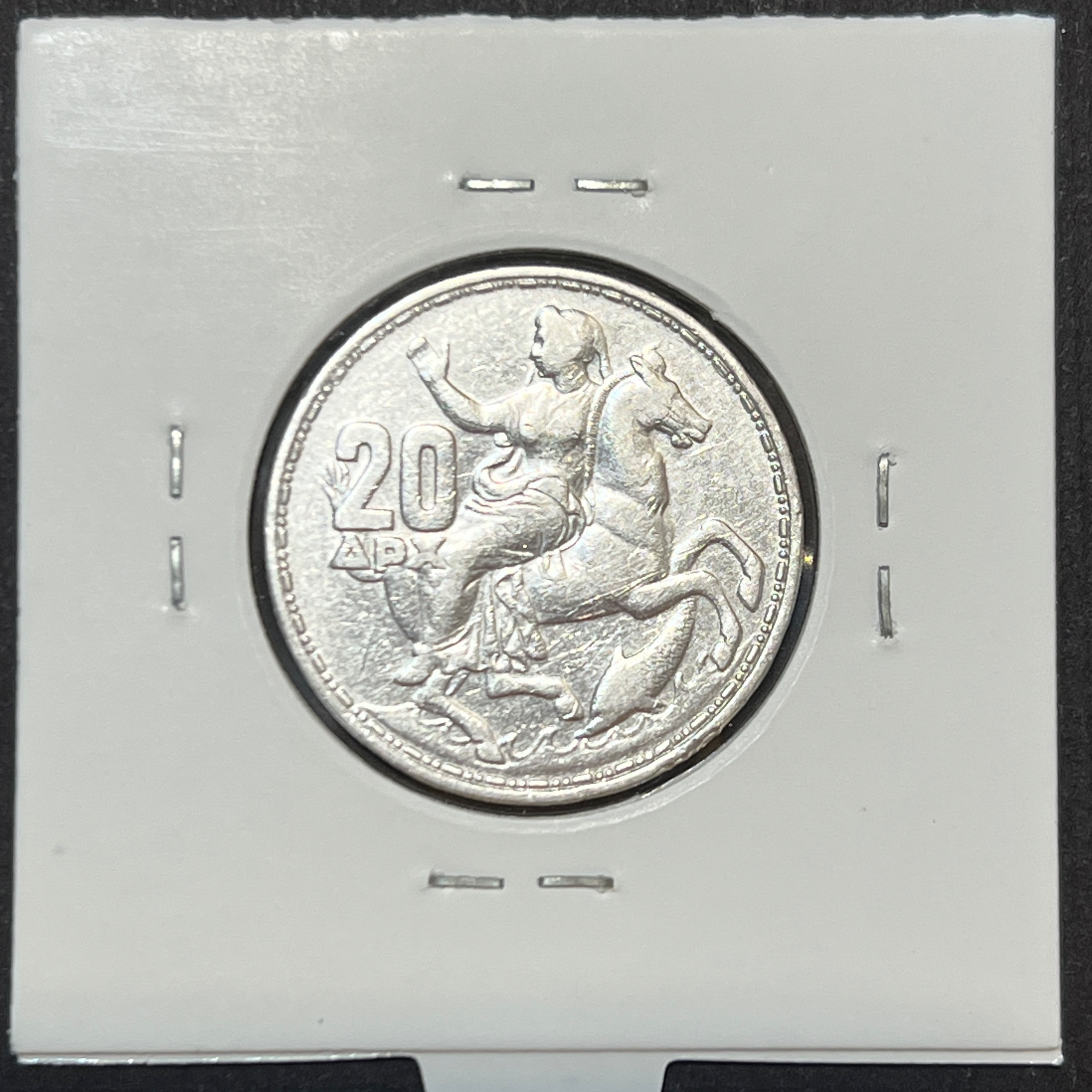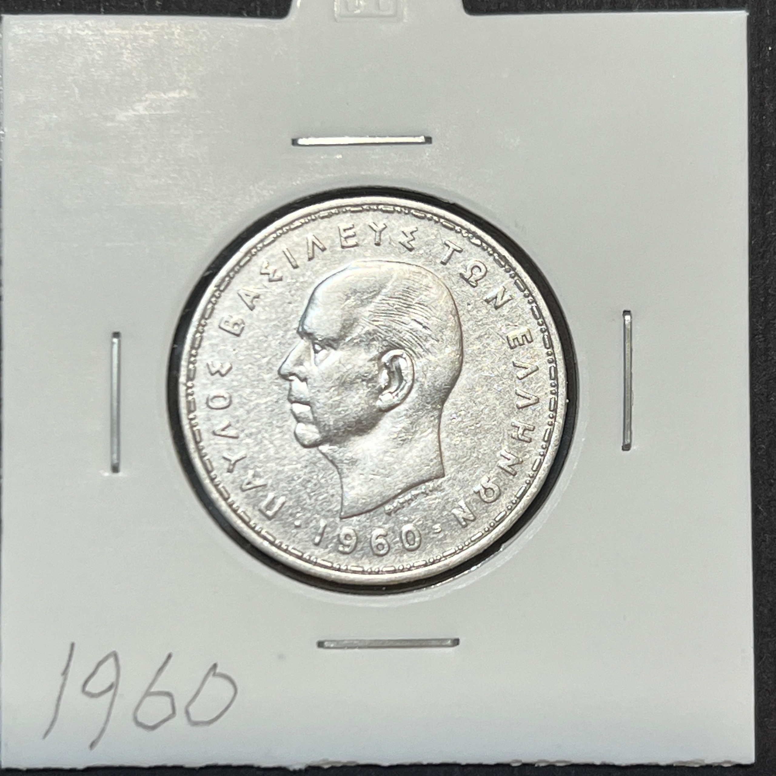 📜 مشخصات تاریخی و کشور این سکه متعلق به کشور یونان (دراخما یونان) و ضرب سال ۱۹۶۰ میلادی است. اگرچه کیفیت آن در رده غیر بانکی/دست دوم قرار می‌گیرد، اما به دلیل اصالت ضرب یک، گزینه‌ای مناسب برای مجموعه‌داران سکه‌های نقره خارجی است.