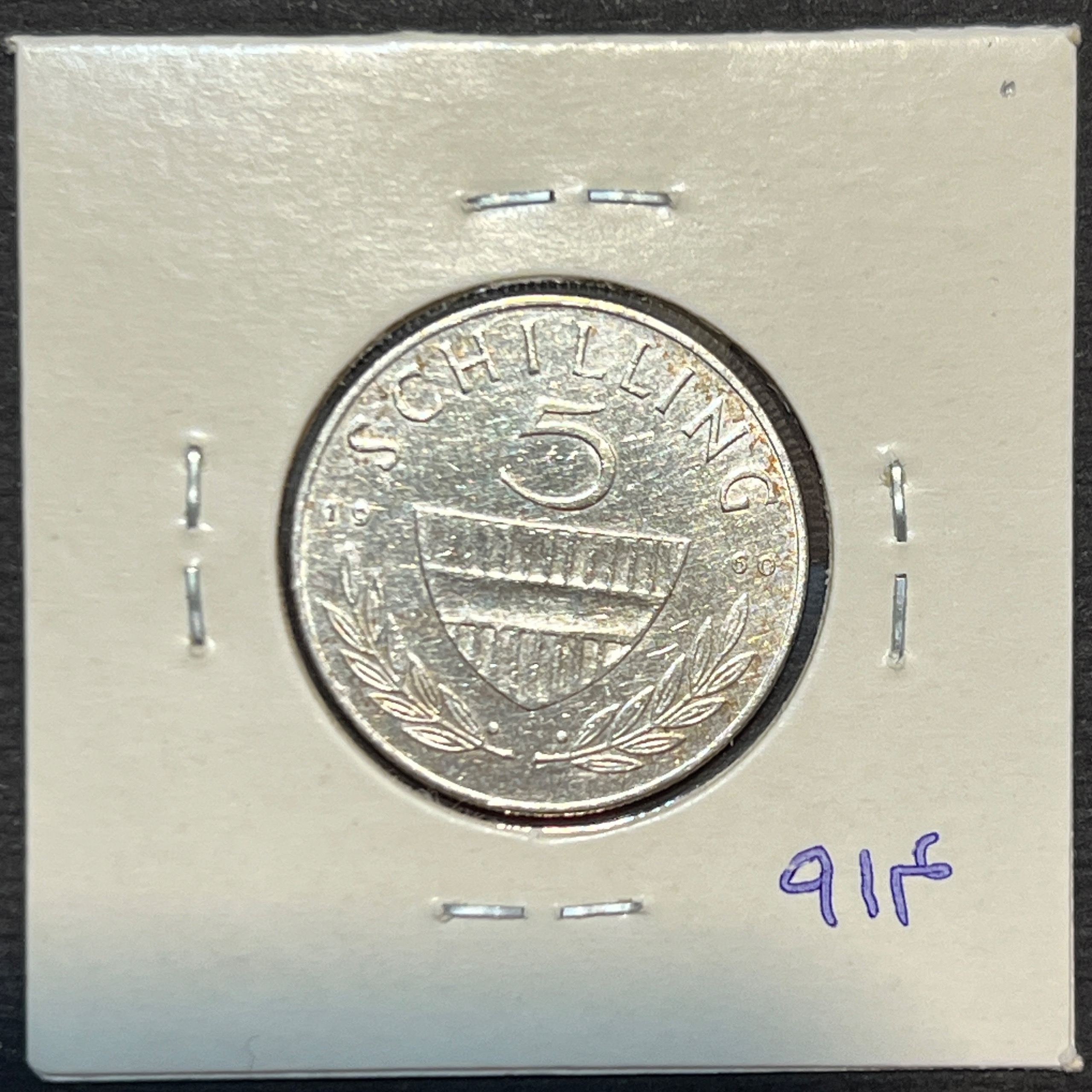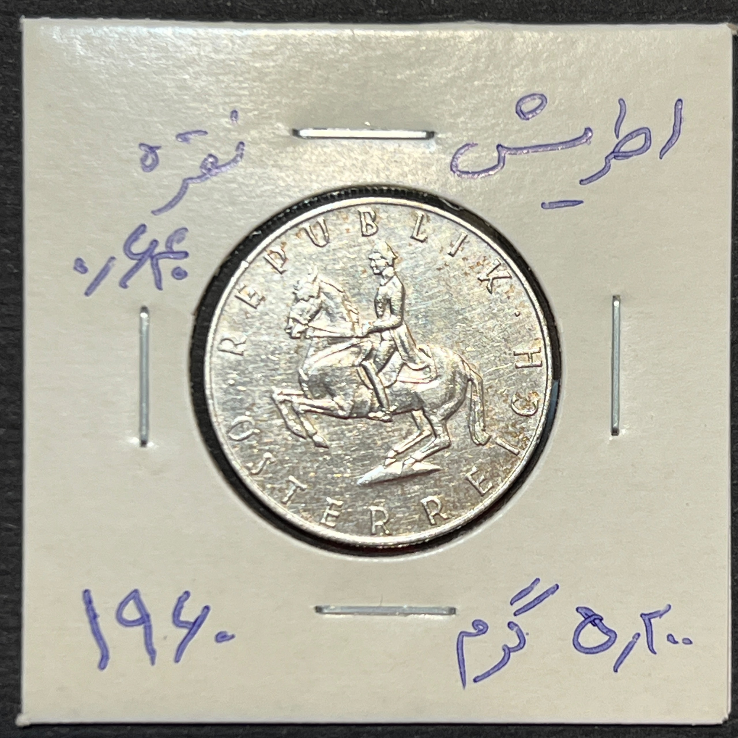 این سکه یک نمونه نقره از کشور اتریش است که در دوران بازسازی اقتصادی پس از جنگ جهانی دوم و در میانه قرن بیستم ضرب شده است.