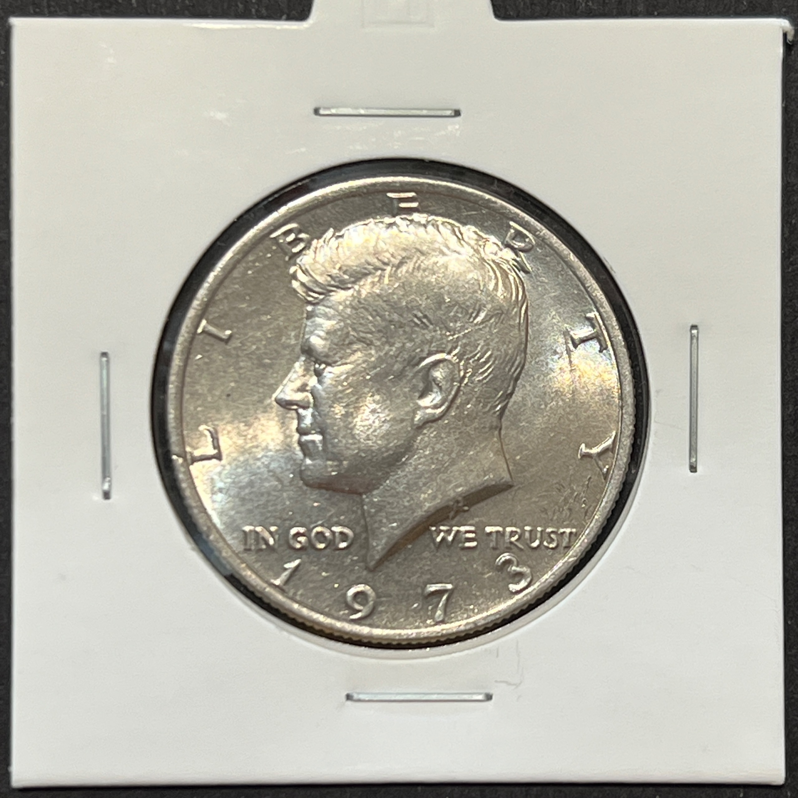 👑 دوره تاریخی و طرح این سکه، یادبود جان اف. کندی (JFK) است و ضرب سال ۱۹۷۳ میلادی میباشد. این سری، بلافاصله پس از ترور کندی در سال ۱۹۶۴ آغاز شد و هنوز هم ادامه دارد. روی سکه تصویر نمادین نیمرخ کندی و پشت آن طرح عقاب با شاخه زیتون (مهر ریاست جمهوری) نقش بسته است.
