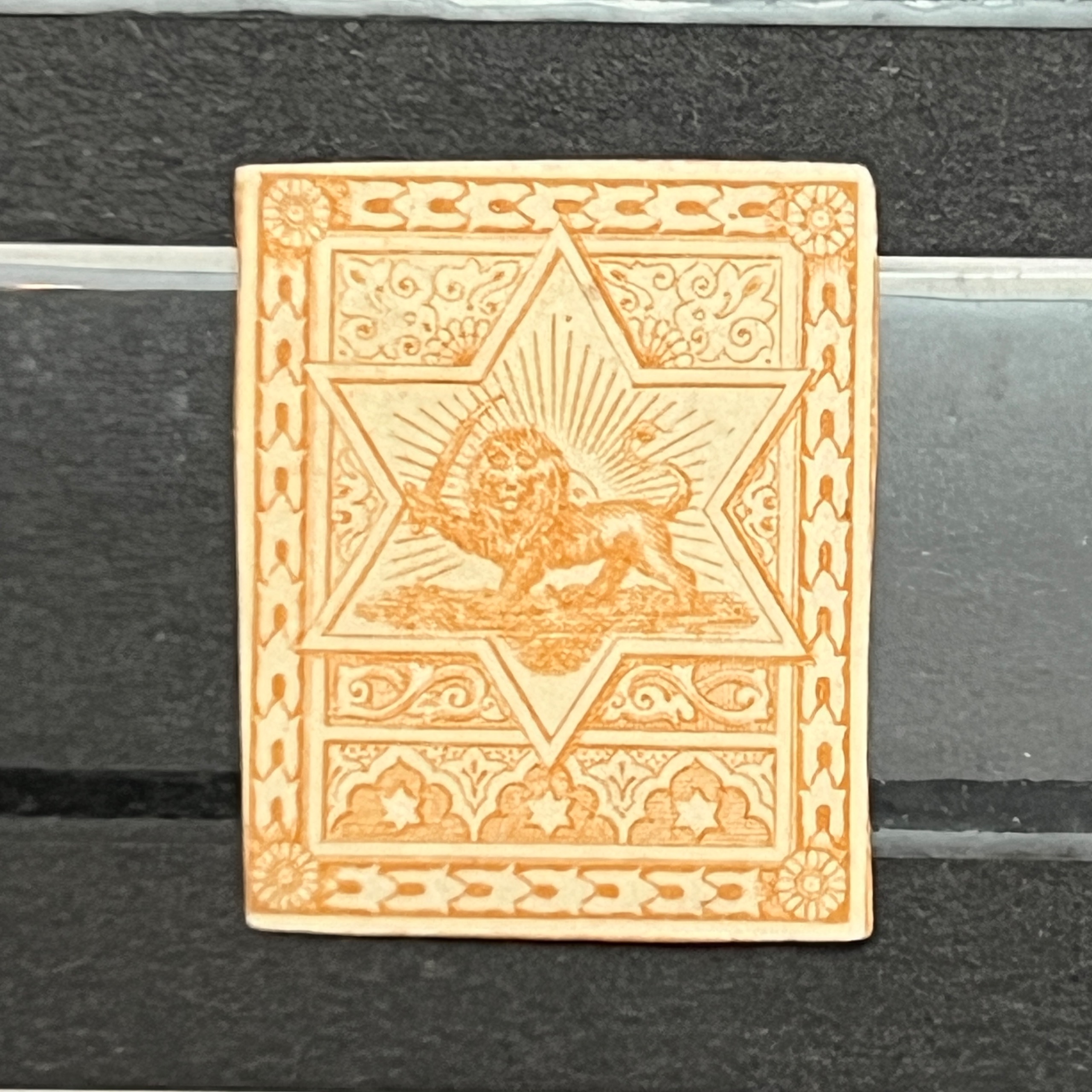تمبر نایاب‌ شیر و خورشید دوره قاجار (مطابق صفحه ۱۷ کاتالوگ). ارزش کاتالوگی ۱۵ تا ۲۲ میلیون. تمبر اصل با وضعیت چسب کم اصالت مادام‌العمر تضمین شده.