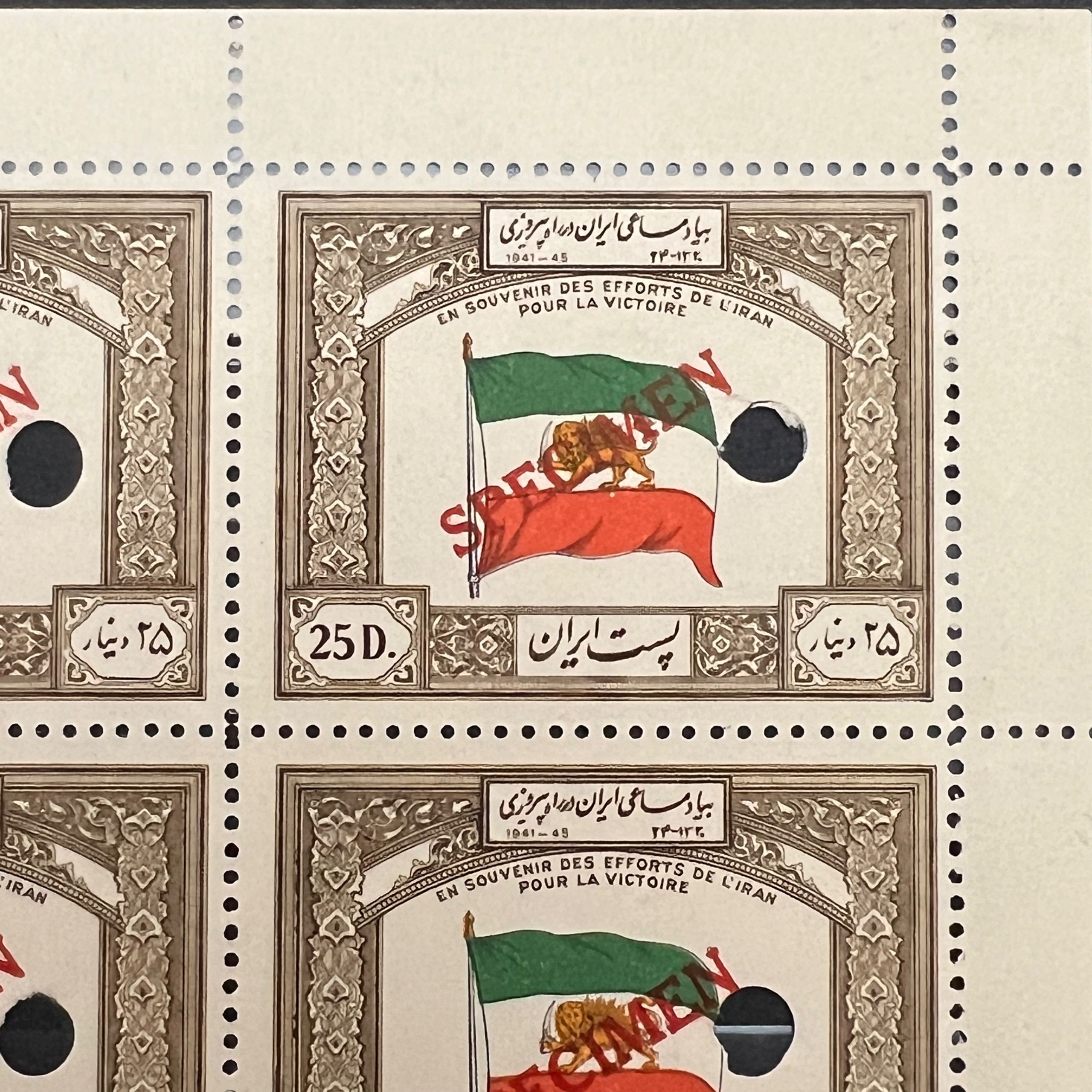 ⭐ ارزش و کمیابی تمبرهای SPECIMEN این تمبر جزو سری مساعی و متعلق به دوره پهلوی دوم (محمدرضا شاه) است. مهمترین ویژگی آن، وجود کلمه SPECIMEN (نمونه) است. تمبرهای نمونه صرفاً برای آرشیو و توزیع میان ادارات پستی بینالمللی چاپ میشدند و در تعداد بسیار محدود تولید میگردیدند؛ این امر، آنها را به اقلامی نایاب و بسیار باارزش تبدیل کرده است.